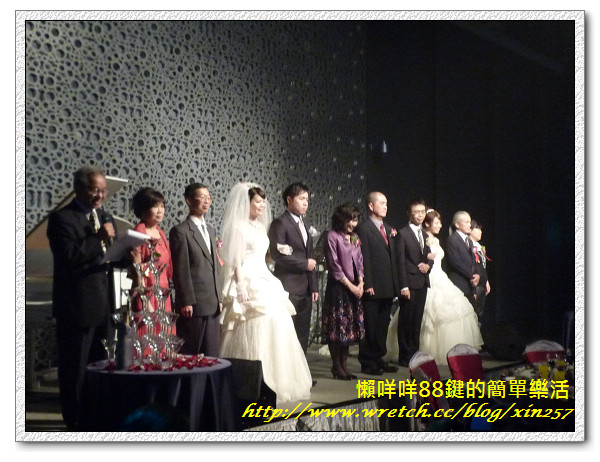原本擔心凡那比颱風來搗亂,幸好只是雷聲大雨點小,台中天氣還不錯。平常很樸素的阿姨打扮起來真是驚為天人,姨丈穿起西裝也意氣風發,展現驚人的大老闆架式。這是我第一次參加這麼多「董」級賓客的婚宴,聲勢很驚人。我、蕭小芸、小妮表姊是今天的招待。