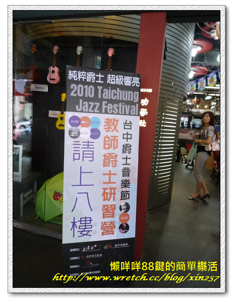 去過很多次台中爵士音樂節,今年終於首度報名教師爵士研習營。今天上完第一天的課程,感覺很充實,遇到好幾個圈內人(老師、學長、學弟、學妹),推薦給沒趕上今年研習的音樂老師們,明年報名要請早喔!招生對象:中、小學藝術人文領域教師,具備樂器演奏能力尤佳。活動時間2010.09.11(六)~12(日)、09.25(六)~26(日),共計四天。課程內容:包含賞析、理論、創作、演奏等,全程免費。師資:沈鴻元、李承育、黃盟傑、聞天祥......還看到吳青學姊的大名,明天就可以聽到學姊主講爵士聲樂呢!網指按此連結。