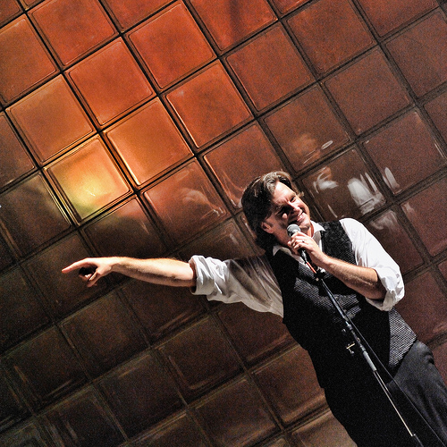 表演者下台搜尋獵物,用眼神與自願者溝通之後,「砰」!保利龍與碎紙片當頭砸下,觀眾也成為表演內容的一部份。獅子男被砸了個滿頭滿臉,卻豎起大拇指:「爽!」呵呵~~等我回家會準備好傢伙,看是要球棒還是瓦片,每天都可以讓獅子男爽歪歪!